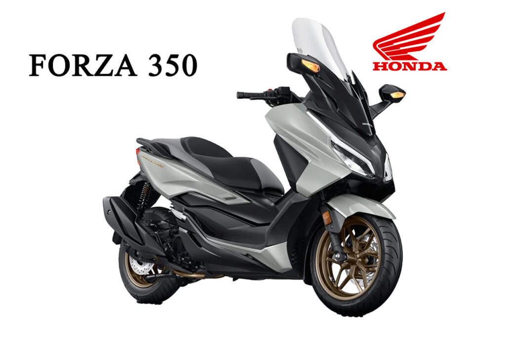 Forza350 with eSP+ 330 cc power, HSTC (Honda Selectable Torque Control) system, front and rear wheel control and coordination system, Emergency Stop Signal (ESS), automatic emergency light system, automatic braking system at Super Bike level safety system and 2-Channel ABS (Anti-Brake System), both front and rear braking systems help lock the wheels during braking, electric front windshield, adjustable mirrors up to 150 mm, USB charger and water bottle holder in the console, Honda Smart Key.